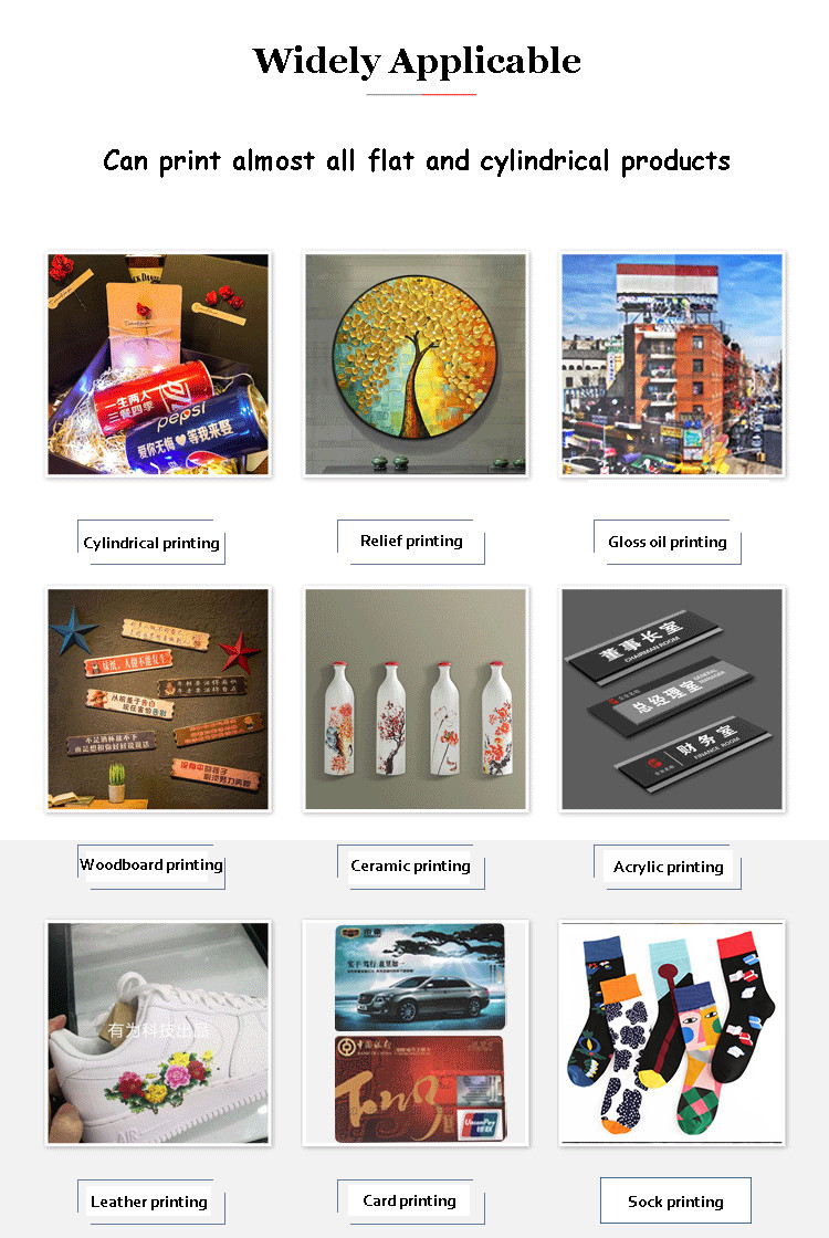 La stampa UV è una stampa digitale ad alta tecnologia, senza piastre, a colori. Non è limitata dai materiali. Può essere utilizzata su metallo, plastica, porte scorrevoli, porte scorrevoli, vetro, piastre, vari segnali,cristallo, PVC, acrilico, pietra, pelle, ecc. stampa a livello fotografico a colori sulla superficie. Non è necessario fare una piastra e completare la stampa in una sola volta, con colori belli e ricchi,resistenza all'abrasione, protezione UV, funzionamento semplice e conveniente, velocità di stampa delle immagini veloce e pienamente conforme agli standard di stampa industriale.